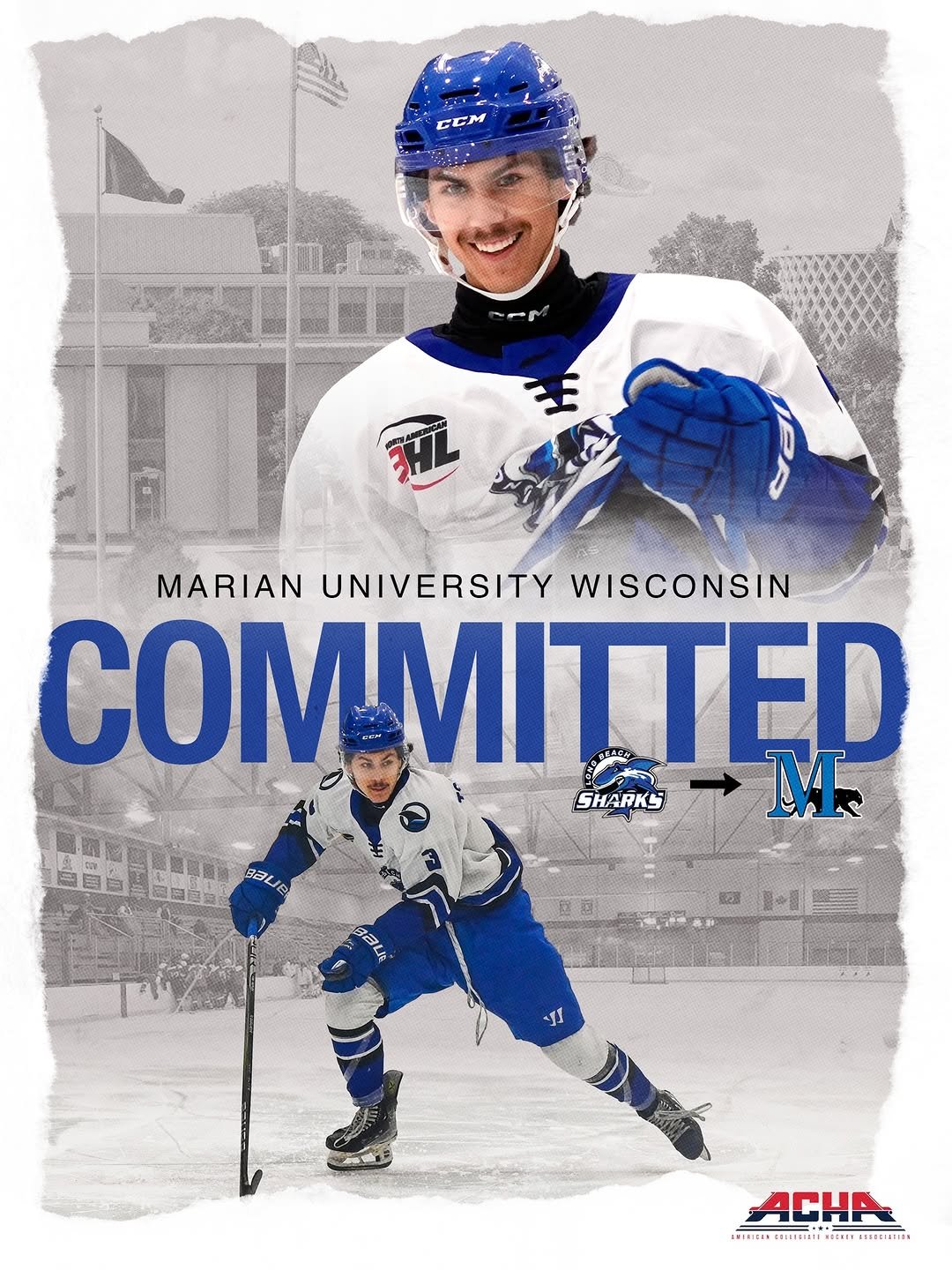 Congratulations to Long Beach Sharks forward, Jace Tourtillott, who committed to play ACHA D2 hockey at Marian University Wisconsin!